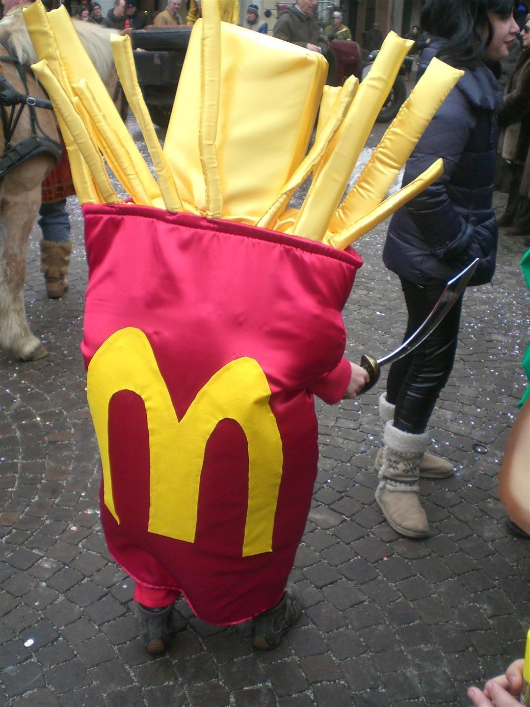 Meanwhile, back in Piazza Cadorna, another crowd was gathering. They were waiting for King Falcett and his court to arrive as well. This crowd was waiting for the costume contest that the court would judge. Among the interesting costumes in the piazza I noticed this falcetto-wielding box of french fries,